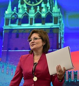 Специальное заседание Совета при президенте России по развитию гражданского общества и правам человека (СПЧ) по теме "Переселение соотечественников в Россию: проблемы законодательства и практики" прошло в здании Администрации президента России. Начальник главного управления по вопросам миграции МВД России Ольга Кириллова во время заседания.