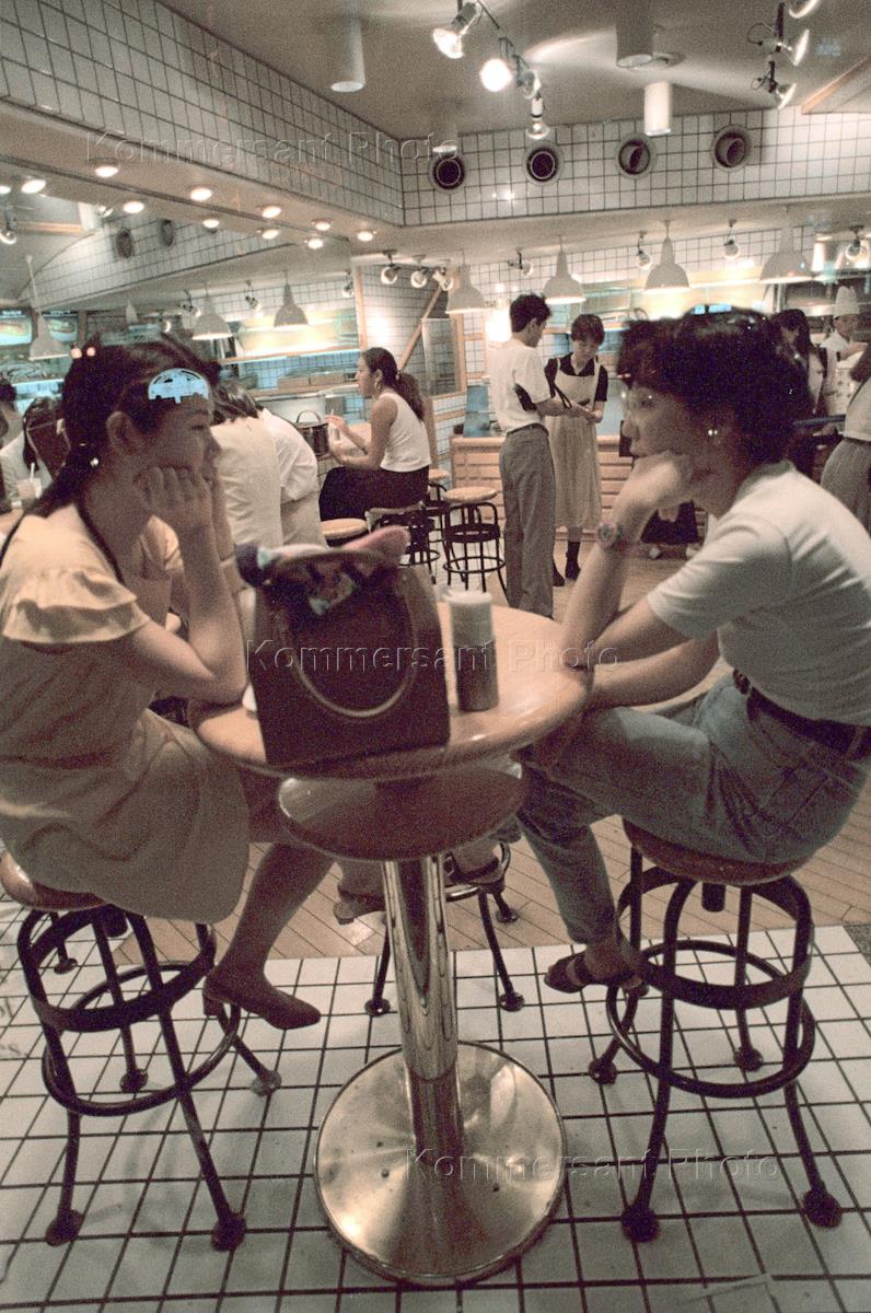 Girls sit in a cafe.