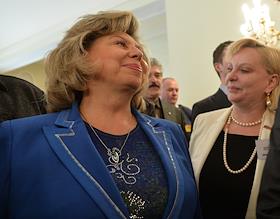 VIII съезд политической партии "Справедливая Россия" в Колонном зале Дома союзов. Уполномоченный по правам человека в России Татьяна Москалькова (слева) во время работы съезда.