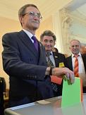 VIII съезд политической партии "Справедливая Россия" в Колонном зале Дома союзов. Член Центральной Избирательной Комиссии (ЦИК) России Николай Левичев во время голосования на съезде.