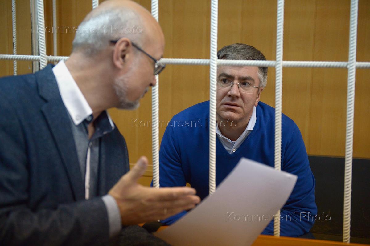 Бывший заместитель руководителя Федерального агентства России по туризму Дмитрий Амунц (справа), обвиняемый по делу о хищении денежных средств у Межпромбанка во время заседания Тверского районного суда.