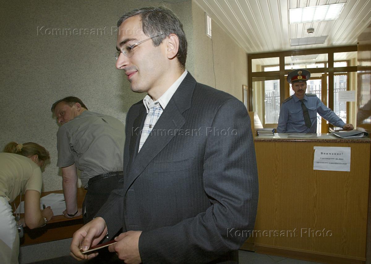 Director of the oil company YUKOS Mikhail Khodorkovsky visits the General Office of Public Prosecutor. He was summoned there as a witness on the arrested Platon Lebedev case.
