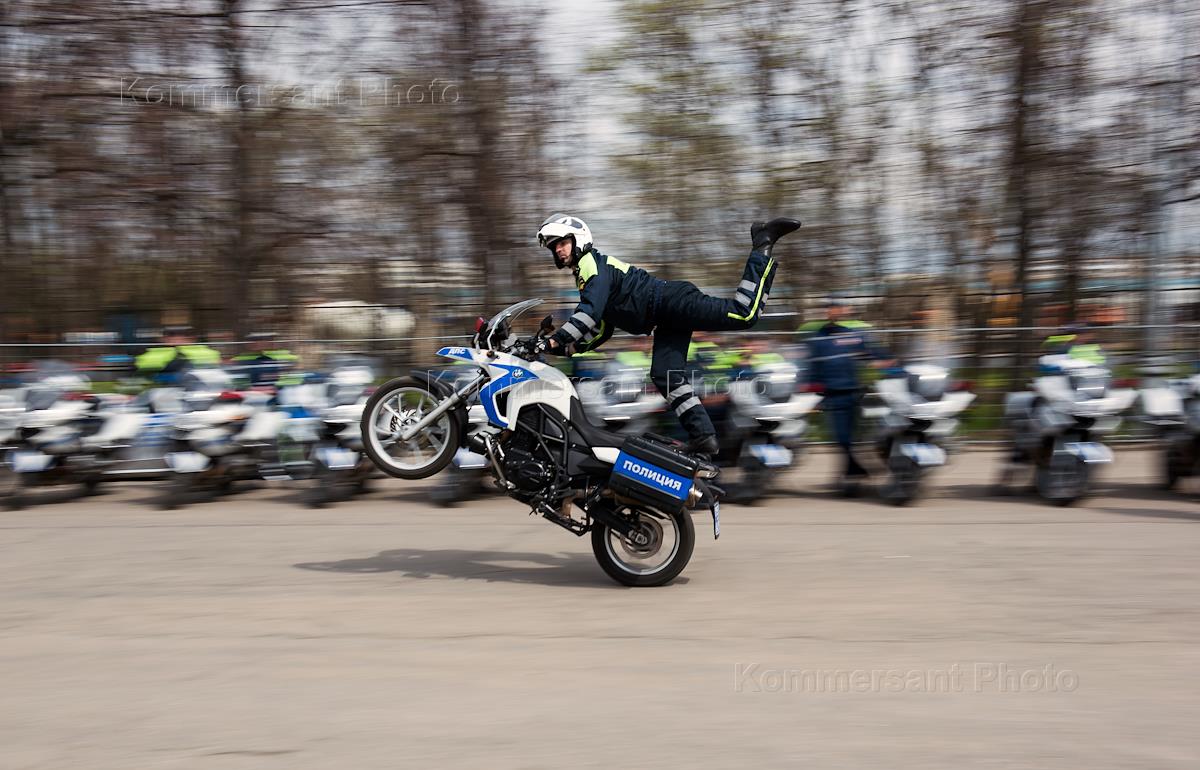 Мотоциклы компании БМВ (BMW) дорожно-патрульной службы (ДПС) на площадке ГИБДД.