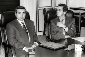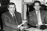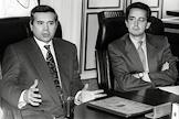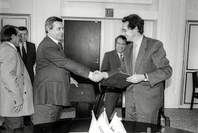 Президент "ЛУКойл" Вагит Алекперов (слева) и генеральный директор концерна ENI Бернабе Франко (справа) на церемонии подписания соглашения между российской компанией "ЛУКойл" и итальянским энергетическим концерном ENI.