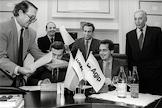 Президент "ЛУКойл" Вагит Алекперов (второй слева) и генеральный директор концерна ENI Бернабе Франко (второй справа) на церемонии подписания соглашения между российской компанией "ЛУКойл" и итальянским энергетическим концерном ENI.