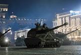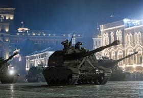 Ночная совместная репетиция пешей и механизированной колонн парадного расчета по подготовке к военному параду, посвященного 71-й годовщине Победы в Великой Отечественной войне, на Красной площади. Самоходная артиллерийская установка (САУ) "Коалиция-СВ".