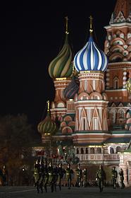 Ночная совместная репетиция пешей и механизированной колонн парадного расчета по подготовке к военному параду, посвященного 71-й годовщине Победы в Великой Отечественной войне, на Красной площади. Проход линейных Парада.