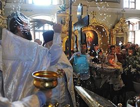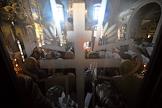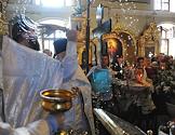 Жанровая фотография. Обряд освящения куличей в храмах Москвы. Часовня святителя Пантелеймона в Отрадном. Клирик храма свт. Николая Мирликийского в Отрадном протоиерей Дмитрий Рожков во время службы.
