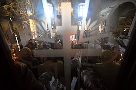 Жанровая фотография. Великий Пост. Верующие во время литургии в Великую Суббту в храме Рождества Пресвятой Богородицы во Владыкине.