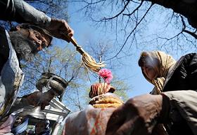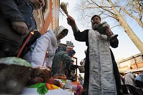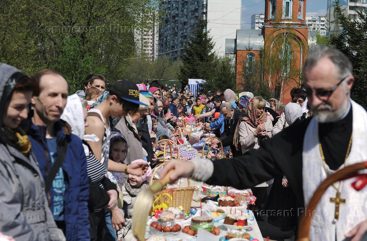Жанровая фотография. Обряд освящения куличей в храмах Москвы. Храм Рождества Пресвятой Богородицы во Владыкине.