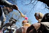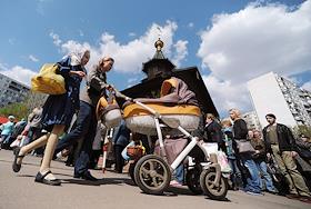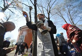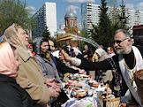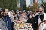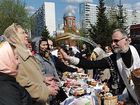 Жанровая фотография. Обряд освящения куличей в храмах Москвы. Часовня святителя Пантелеймона в Отрадном.