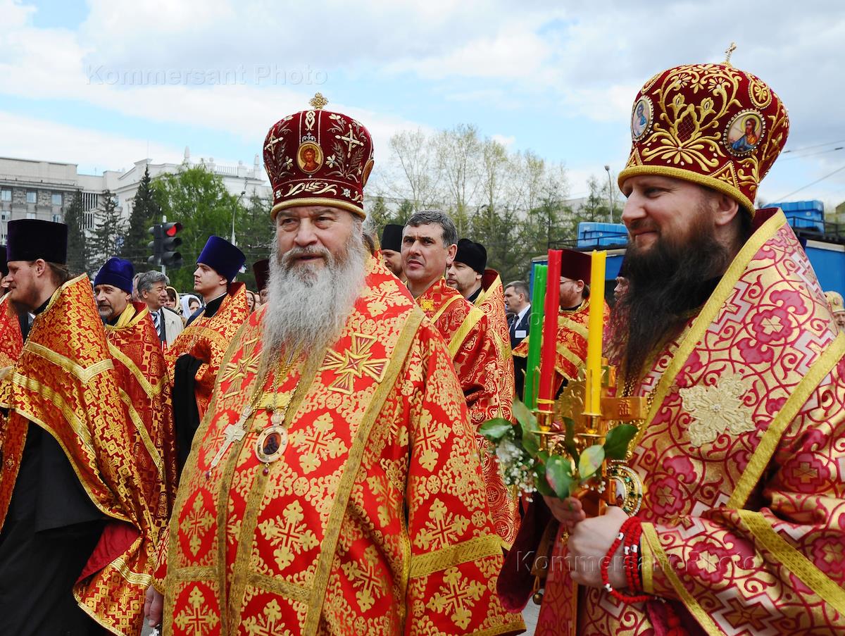 Священнослужители во время пасхального крестного хода в Новосибирске.