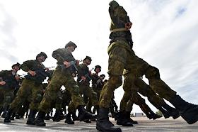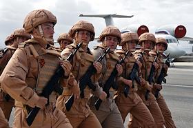 Российские военнослужащие во время генеральной репетиции парада, посвященного 71-й годовщине Победы в Великой Отечественной войне, на авиабазе "Хмеймим".