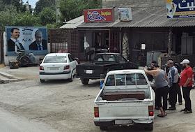 Жанровая фотография. Ситуация в Пальмире. Портрет президента Сириии Башара Асада на автозаправочной станции (АЗС).