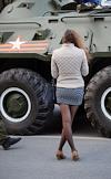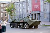 Репетиция военного парада в честь 71-й годовщины Победы в Великой Отечественной войне. Военная техника на улицах города перед началом репетиции.