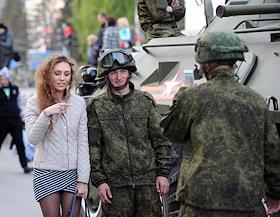 Репетиция военного парада в честь 71-й годовщины Победы в Великой Отечественной войне. Военнослужащие перед началом репетиции.