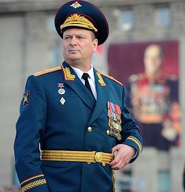 Репетиция военного парада в честь 71-й годовщины Победы в Великой Отечественной войне. Командующий 41-й армией Центрального военного округа генерал-майор Алексей Завизьон во время репетиции.