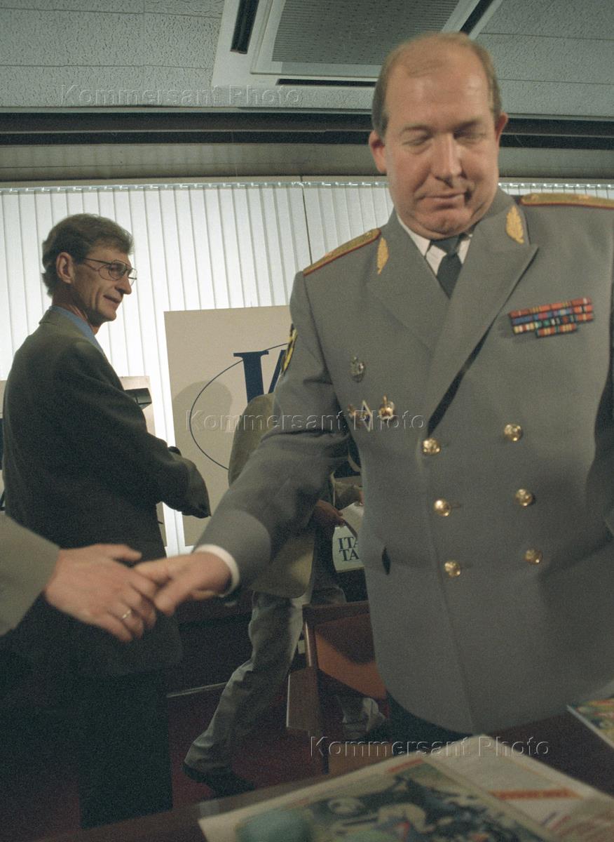 Head of the Russian Interior Affairs Ministry (MVD) chief road police directorate arrives at the ITAR-TASS news agency headquarters to take part in the news conference summoned to mark the directorate's 67th anniversary.