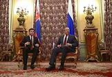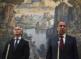 Министр иностранных дел (МИД) России Сергей Лавров (справа) и председатель правления ПАО "Газпром нефть" Александр Дюков (слева) перед началом церемонии подписания соглашения между МИД России и ПАО "Газпром нефть" о сотрудничестве. Подписание прошло в Доме приемов МИД России.