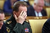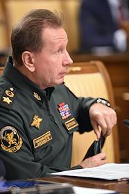 Директор Федеральной службы войск национальной гвардии России - главнокомандующий войсками национальной гвардии России Виктор Золотов перед началом заседания правительства России.