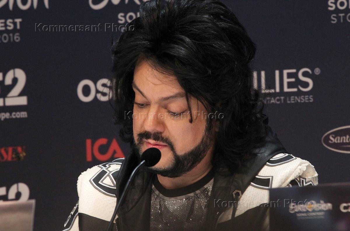 Международный конкурс песни "Евровидение-2016" в Стокгольме. Певец, продюсер Филипп Киркоров на пресс-конференции победителей первого полуфинала "Евровидение-2016".