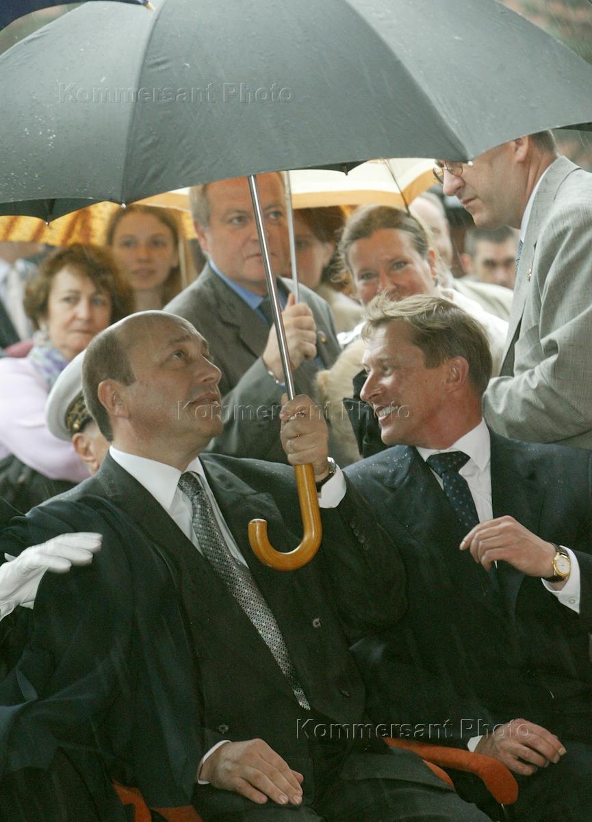 Foreign Affairs Minister of Russia Igor Ivanov (left) and Defence Minister Sergey Ivanov (right) attend the opening ceremony of the exhibition "Charles de Gaulle".