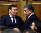 Заседание Верховной Рады Украины. Новым генеральным прокурором Украины утвержден бывший лидер партии "Блок Петра Порошенко" Юрий Луценко. Генеральный прокурор Украины Юрий Луценко (слева) и президент Украины Петр Порошенко (справа) на заседании Верховной Рады.