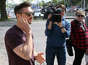 Международный конкурс песни "Евровидение-2016" в Стокгольме. Певец, представляющий Россию на конкурсе Сергей Лазарев во время прогулки по Стокгольму.
