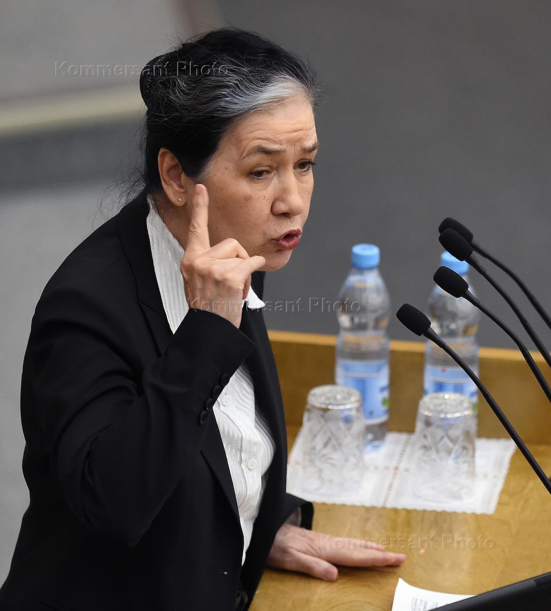 Заместитель министра труда и социальной защиты России Любовь Ельцова на пленарном заседании Государственной думы России.
