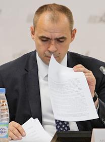 Министр промышленности и науки Свердловской области Андрей Мисюра перед выездном заседанием областного организационного комитета по подготовке и проведению X Международной выставки вооружения, военной техники и боеприпасов Российская выставка вооружения. Нижний "Тагил - 2015" (Russia Arms EXPO 2015) на полигоне "Старатель".