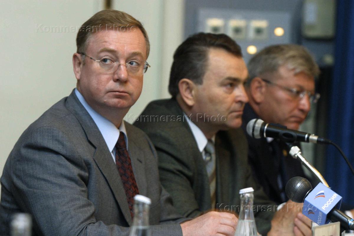 Sergei Stepashin, Russia's Audit Chamber chief (left), secretary of the Russian Clearing-Audit Association Nikolai Stolyarov (centre) and head of Clearing-Audit Chamber in Leningrad Region Andrey Vasiliev (right) at the Association seminar.