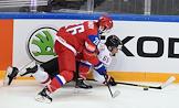 Чемпионат мира по хоккею. Групповой этап. Матч между сборными командами России и Швейцарии прошел на арене "ВТБ Ледовый дворец". Игрок сборной России Илья Павел Дацюк (справа) во время матча.