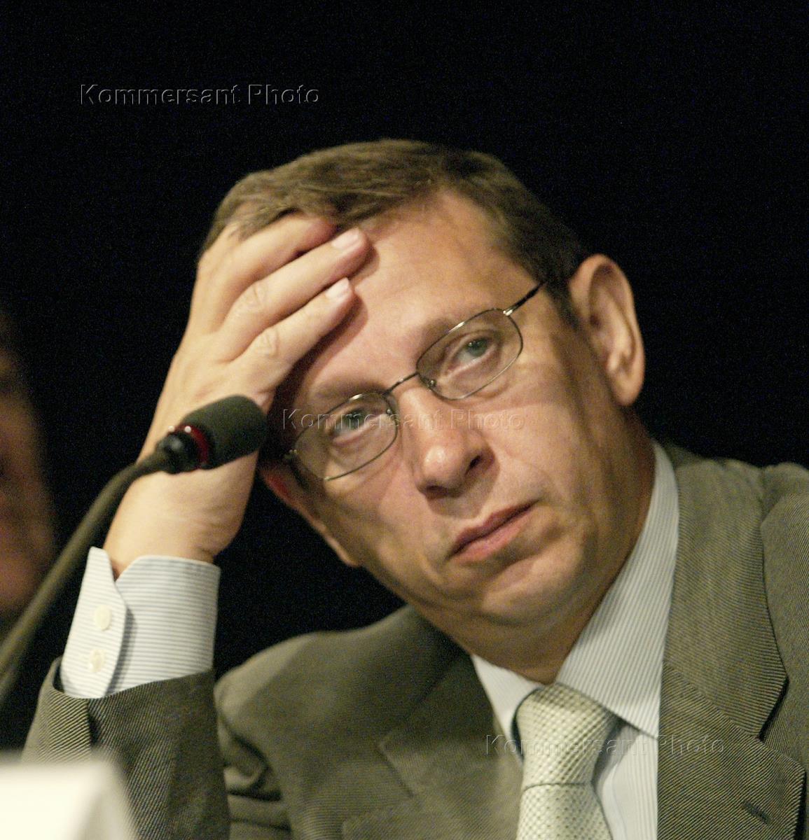 Chairman of the Board of Directors of the Financial Corporation "Sistema", Evtushenkov Vladimir (left) and President of the Russian Trade Industrial Palace Evgeny Primakov (right) attend the Russian-Saudi business-forum.