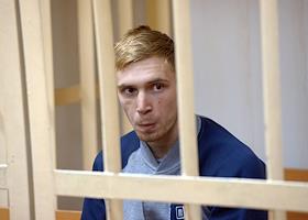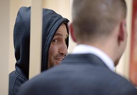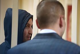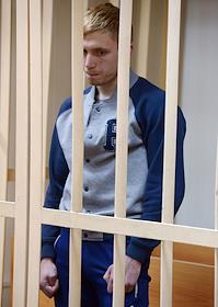 Задержанный по делу о массовой драке со стрельбой на Хованском кладбище спортсмен, самбист Вячеслав Серов во время рассмотрения вопроса об аресте в Пресненском суде.