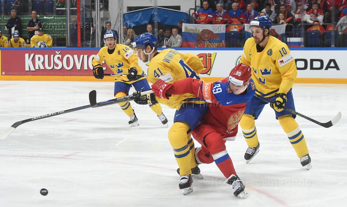 Чемпионат мира по хоккею. Групповой этап. Матч между сборными командами России и Швеции на арене "ВТБ Ледовый дворец".