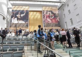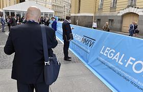 VI Петербургский Международный Юридический Форум. Участники форума у здания Генерального штаба - одной из площадок форума.