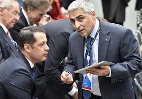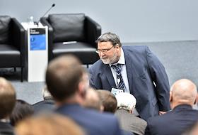 VI Петербургский Международный Юридический Форум. Руководитель Федеральной антимонопольной службы России Игорь Артемьев перед началом пленарного заседания "Доверие к праву – путь разрешения глобальных кризисов". Заседание прошло в здании Генерального штаба.