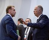 Рабочая поездка президента России Владимира Путина в Сочи. Саммит Россия - АСЕАН. Первый заместитель председателя правительства России Игорь Шувалов (слева) и генеральный директор Российского фонда прямых инвестиций (РФПИ) Кирилл Дмитриев (справа) перед началом встречи с премьер-министром Таиланда П.Чан-Очой в конгресс-центре гостиницы "Рэдиссон Блю Курорт".