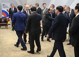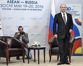 Рабочая поездка президента России Владимира Путина в Сочи. Саммит Россия - АСЕАН. Президент России Владимир Путин (в центре) перед началом встречи с участникми саммита в конгресс-центре гостиницы "Рэдиссон Блю Курорт".