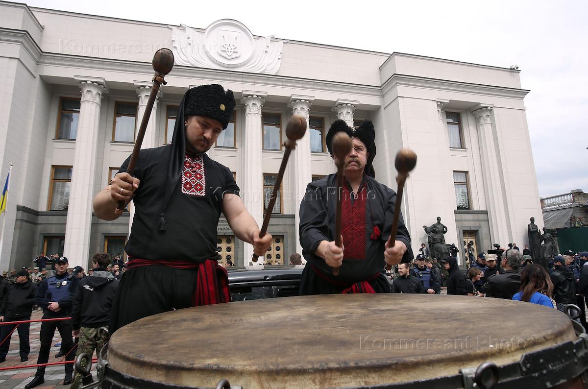 Акция националистов в Киеве. Пикет активистов батальона "Азов" против выборов на Донбассе.