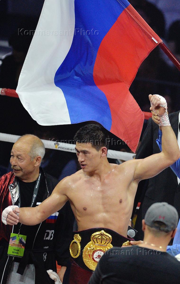 Russian boxer Dmitry Bivol after the match for the WBA interim world champion title against WBA light heavyweight holder Felix Valera of Dominican Republic.