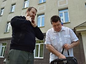 Рассмотрение уголовного дела в отношении Дмитрия Демушкина (слева), обвиняемого в экстремизме прошло в Нагатинском суде.