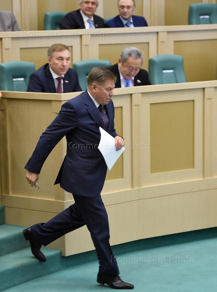 Представитель в Совете Федерации (СФ) России от законодательного (представительного) органа государственной власти Приморского края Вячеслав Фетисов перед началом заседания СФ России.