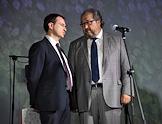 Церемония торжественного открытия Музея русского импрессионизма в культурно-деловом комплексе "Большевик". Искусствовед Михаил Каменский (слева) и директор Музея современного искусства "Гараж" Антон Белов (справа) на церемонии.