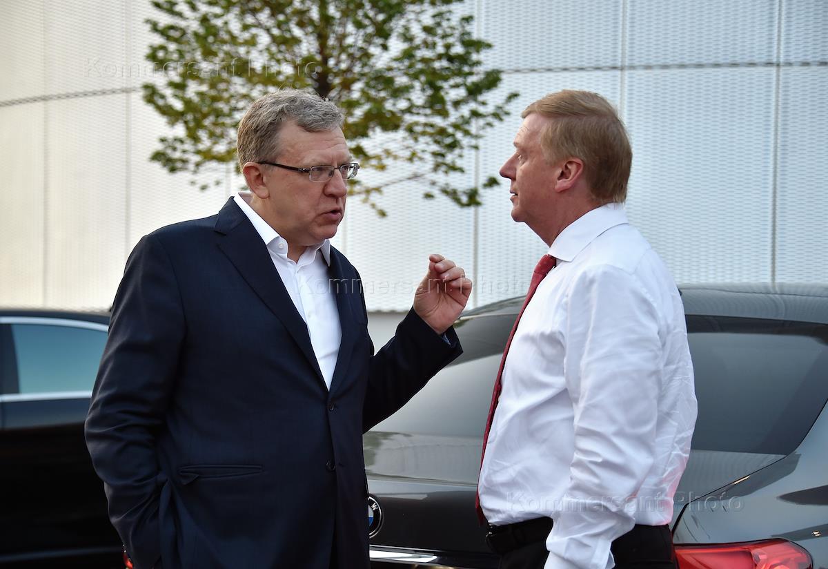 Церемония торжественного открытия Музея русского импрессионизма в культурно-деловом комплексе "Большевик". Председатель правления ООО УК "Роснано" Анатолий Чубайс (справа) и председатель Комитета гражданских инициатив, декан факультета свободных искусств и наук Санкт-Петербургского государственного университета Алексей Кудрин (слева) перед началом церемонии.