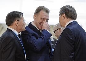 Рабочая поездка президента России Владимира Путина в Астану. Слева направо: заместитель министра экономического развития России Алексей Лихачев, первый заместитель председателя правительства России Игорь Шувалов, помощник президента России Юрий Ушаков перед началом заседание Высшего Евразийского экономического совета на уровне глав государств в узком составе.