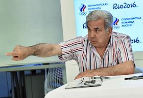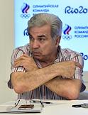 Главный тренер женской сборной России по борьбе Юрий Шахмурадов во время пресс-конференции, посвященной подготовке национальной сборной по вольной борьбе к Олимпийским играм в Рио-де-Жанейро. Пресс-конференция прошла в Инновационном центре Олимпийского комитета России.