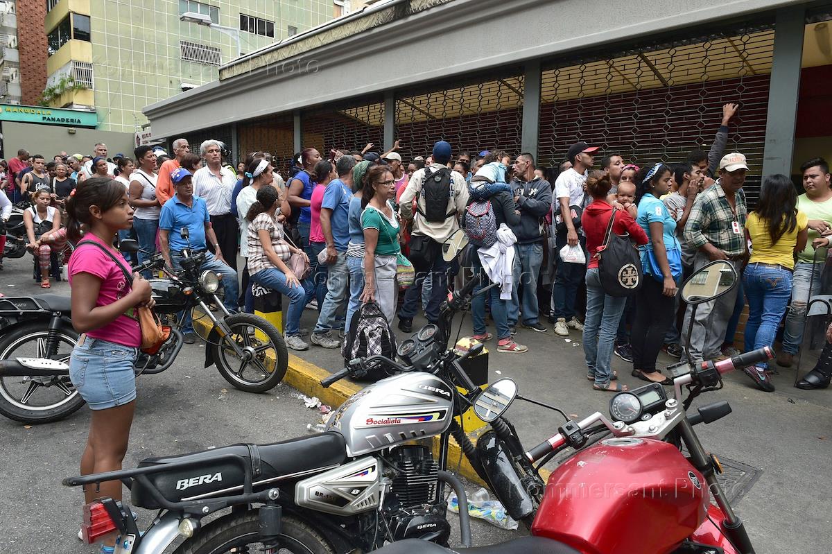 Жанровая фотография. Виды Каракаса. Покупатели в очереди за продуктами.