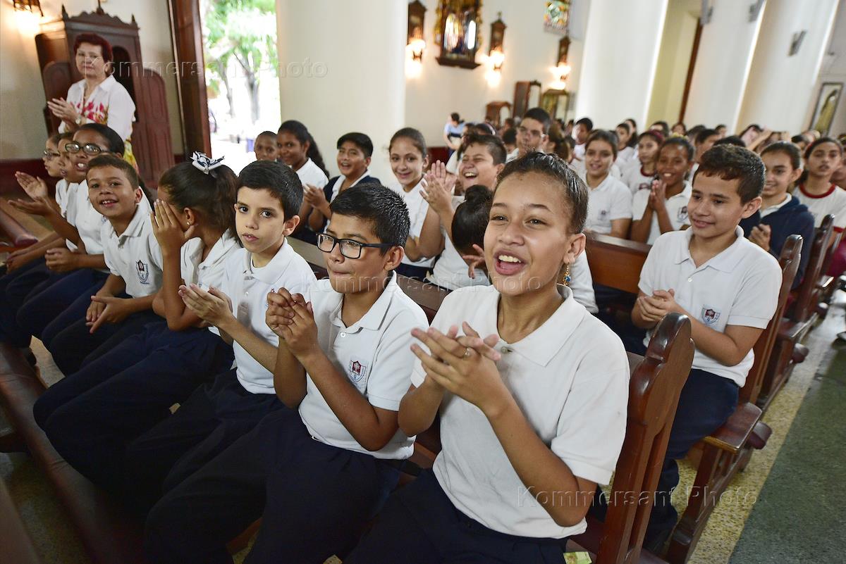 Жанровая фотография. Виды Каракаса. Дети во время службы в каталической церкви.
