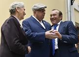 Слева направо: профессор Музыкально-педагогического института имени М.М.Ипполитова-Иванова Елена Бакланова, член комитета Государственной думы России по земельным отношениям и строительству Владимир Ресин и заместитель мэра Москвы в правительстве Москвы по вопросам жилищно-коммунального хозяйства и благоустройства Петр Бирюков во время церемонии открытия Дома Российского исторического общества, приуроченной к 150-летию основания этой организации.